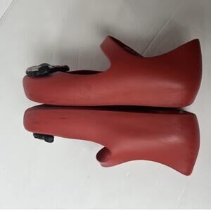Mini Melissa + Disney ballet flats. Mary Jane style red shoes with Minnie Mouse and Mickey Mouse kissing faces. Good condition, minor wear / scuffing. Size 10.