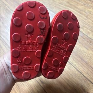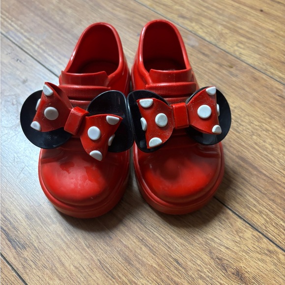 Adorable red kids shoes featuring a playful bow design. Perfect for adding a fun touch to any outfit. Rubber shoes good condition super cute toddler size 6