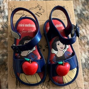 Mini Melissa Navy Sandals with Red Apple Accent. 100% waterproof.