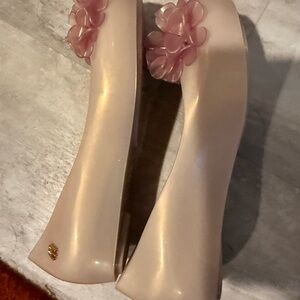 Stylish pink jelly flats with floral embellishments. Size 1. Excellent condition.