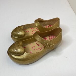 Mini Melissa Ultra Heart Me Sparkle Gold Glitter Sparkle Ballet Jelly S…