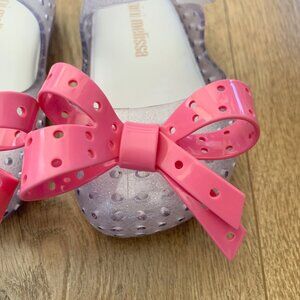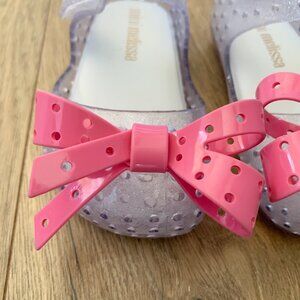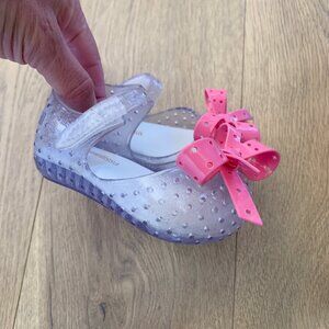 Mini Melissa Ultragirl Flats • Clear / Silver with Pink Bows • Infant Size 5