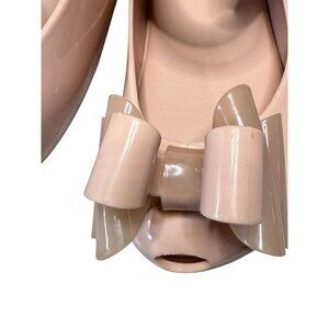 These Mini Melissa toddler shoes feature a stylish design with decorative bows and a glossy finish. Comfortable and durable, ideal for little feet. Size 5 little stain READ