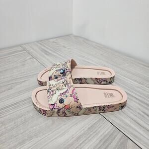 Mini Melissa Unicorn Pool Slide Sandals Pink Big Kids J2 PVC Summer.