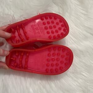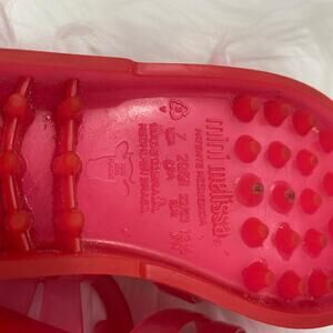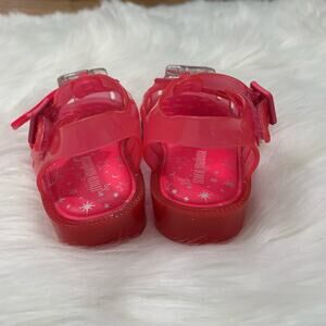 Mini Melissa pink star and rainbow possession jelly sandals super cute Barbie pink. There is some wear to the foot bed and Velcro, but lots of life left!