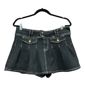 Stylish denim mini skirt with pleats and button details. Perfect for casual outings.
