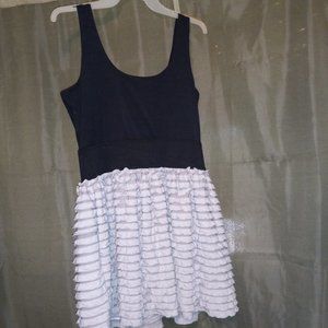 Mini Dress Miley Cyrus Dress Ruffled Tank Top Black Tank Top Dress with thick corset like Elastic Waistband with attached Ruffled Light Grey Skirt