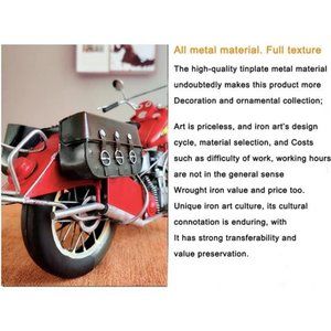 Handcrafted Motorcycle Model: This red colored Harley Davidson motorcycle is a handmade iron model, perfect for motorcycle enthusiasts and collectors. It’s a unique chopper motorcycle, a great addition to your collection.