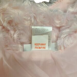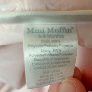 Mini Muffin baby girl faux fur jacket, size 6–9 months. This adorable and cozy pink jacket features a soft rosette-textured faux fur shell, elegant crystal-style button front, and two sweet satin gray bow accents on the pockets. Fully lined for comfort, this cute little coat is perfect for special occasions, family photos, holidays, or keeping your baby girl warm in style. Made from 100% polyester, it’s gently used and in excellent preloved condition. Easy to care for, machine washable inside out on gentle, and made in China.