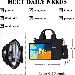 Mini Nylon Tote Bag with Multi Pockets Crossbody Purse for Women
