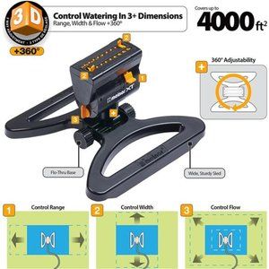 🧿Mini-sized oscillator with full-size coverage up to 4,000 sq. ft..Flo-thru base allows unit-to-unit connection so multiple sprinklers can be set up throughout the yardBacked by a Melnor Lifetime Limited Warranty. We stand behind our products.