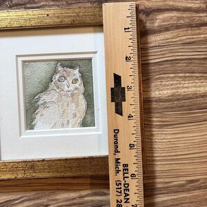 Mini Owl Watercolor Painting Gold Gilt Frame Square 6 x 6 Handmade Drawing OOAK