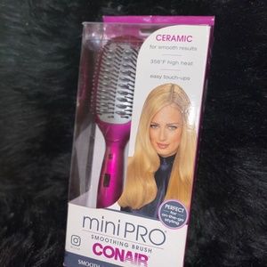 mini PRO SMOOTHING BRUSH PERFECT for on-the-go styling Whether your travels take you around the world or just across town, this mini-sized smoothing brush packs professional results. Whether you travel around the world or within it will give you professional results. city, this mini smoothing brush CERAMIC TECHNOLOGY Distributes heat evenly to help eliminate damaging hot spots. Ceramic technology Distributes heat evenly, helping to avoid damage caused by it.