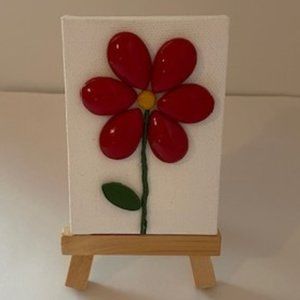 Mini Painting on Canvas with Easel - Red Flower