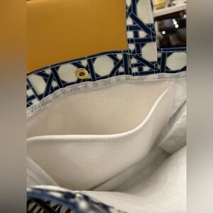 The bag size is around 11”x 10”. It is good size to put cell phone, books, ipad, purse, cosmetics, water bottle at the same time. There is a small pocket inside and you can put cell phone or subway tickets etc.