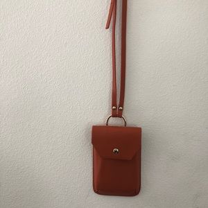 Cute orange mini phone bag, fits up to iPhone 8 PLUS, very cute bag! Adjustable straps. Brand new! Bought at small boutique in la*
