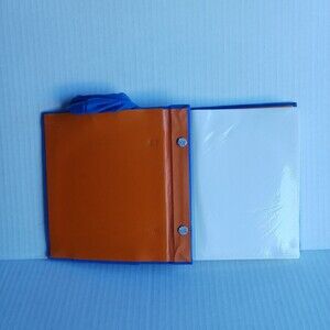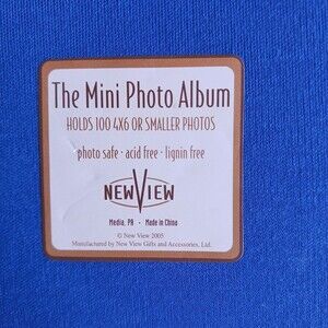 Mini Photo Album Brag Book Holds 100 4x6 Photos Blue Fabric Sweatshirt Cover Holds 100 4x6 or smaller Photos Small discolored spot on back where sticker was removed
