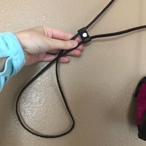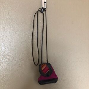Mini sized bag with adjustable strap. Pink suede / leather.