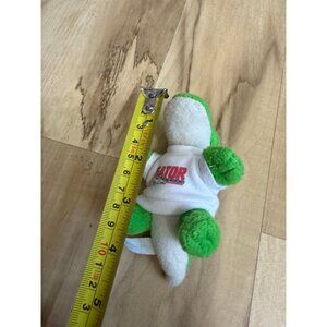 Cute small green gator plush wearing a white shirt with “GATOR” and alligator graphic. A fun little collectible or team spirit mascot toy.
