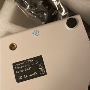 Compact black and white mini projector.