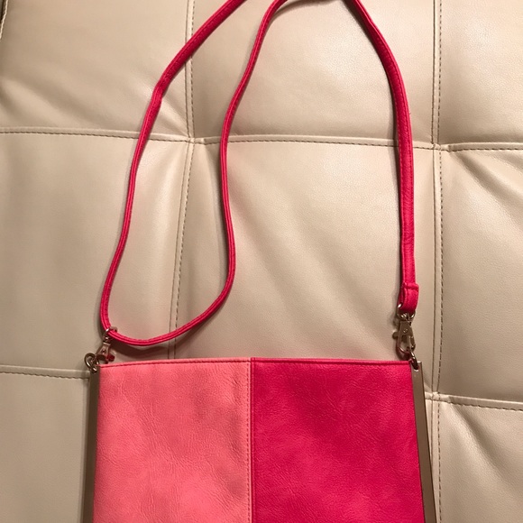 A combination of peachy orangey leather purse