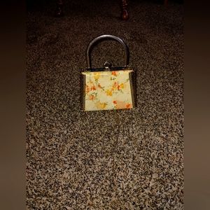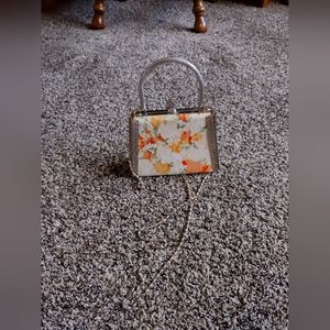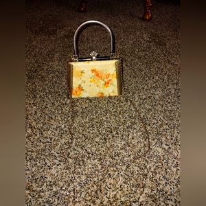 cute vintage mini purse has a chain crossbody strap and floral print. it is missing a few gems (see pics) but is in otherwise excellent condition