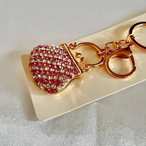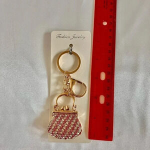 Mini Purse Bag And Key Chain Charm Pink Crystal Rhinestone Gold Tone Hardware