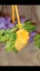 Features a yellow mini purse with purple flowers and gradient green leaves.