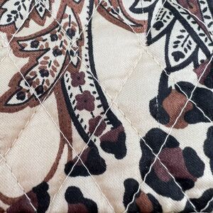 Mini Purse Wallet Satin Quilted Brown Leaf Cheetah Handle Zip 7" x 3.5" Divider