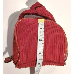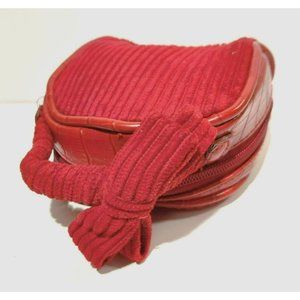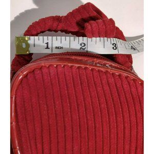 Mini Red Corduroy Cotton Full Zip Jewelry Travel Bag Bow on Handle Inside Pocket