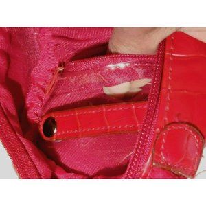 Soft Red Mini Corduroy Cotton Jewelry Travel Case with interior Zip Close Pocket and Necklace Strap with Snap Closure. Also has a Full Zip Closure and Red Bow Handle. Adorable case ready to go, in great condition with no holes, tears or stains.