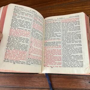 This bible is in great condition but may show signs of previous ownership. Please expect some creasing to the spine and/or minor shelf wear to the cover.