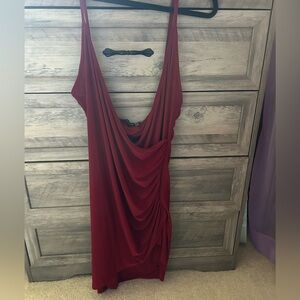 Stylish red mini dress with ruched detailing, slightly sheer. Perfect for any occasion. Worn once.