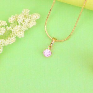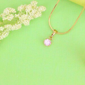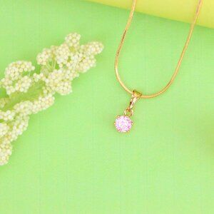 Charming mini rose gold pendant featuring a delicate pink round stone in a classic six-prong setting—perfect for subtle elegance.