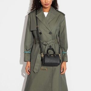Crossgrain leather Two credit card slots Zip-top closure fabric lining Handles with 2 3/4 drop Detachable strap with 23 1/2 drop for shoulder or crossbody wear 7 (L) x 4 3/4 (H) x 4 (W) Style No. CH157