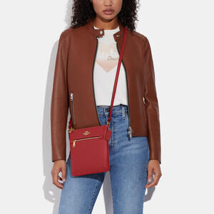 Crossgrain leather Inside multifunction pocket Zip-top closure fabric lining Outside zip pocket Adjustable strap with 22 drop for shoulder or crossbody wear 8 1/4 (L) x 8 1/4 (H) x 1 1/4 (W) Style No. CE871