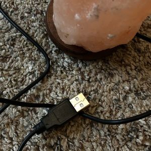 This is a small salt lamp about 5 inches tall. You just plug it into a wall charging box and it turns on. Everything works!