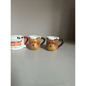 Mini Santa Face And Reindeer Christmas Mugs Vintage