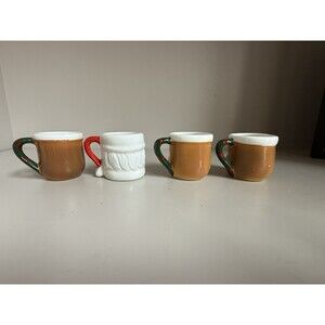 These vintage Mini Santa Face and Reindeer Christmas Mugs are a charming set of three-piece trinket mugs perfect for the holiday season. The mugs feature a painted design with a festive Christmas theme, featuring Santa Claus's face and a reindeer. The colorful and whimsical style makes them a delightful addition to your kitchen or home decor, serving as a fun and collectible item for Christmas commemorations. Perfect little shot glasses!