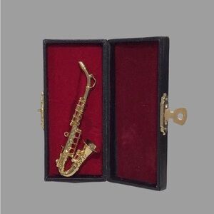 Mini Saxophone and Guitar Miniature Musical Instruments in Black Cases