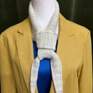 A small, hand-knitted scarf with a simple yet elegant pattern and a dense texture that provides warmth and comfort. Its compact size makes it easy to wear as a stylish accessory or to protect your neck in cool weather. The unique, hand-knitted design adds character and highlights your individual style.
