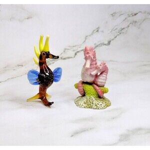 Mini Seahorse Figurines Nautical Statue Art Glass Resin 3" Sea Decor Lot of 2