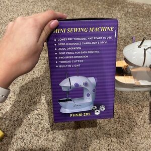Compact and efficient, the Mini Sewing Machine is perfect for quick repairs and small projects. Featuring a sleek white and purple design, it offers easy-to-use controls and a foot pedal for precise operation. Ideal for beginners and hobbyists. It includes 4 bobbins, 1 foot pedal, 2 unopened needles, 1 threader, an a AC/DC adaptor. this sewing machine is very simple and perfect for beginners!! ⚠️ There is an issue with the bottom stitch. only buy this if you are willing to figure out how to fix it, or already know how to. I have attached images of what the bottom stitch looks like. It seems to not grab the top one. please keep this in mind!!! other than that, it is in perfect condition. it has a light also. dm for any questions!!