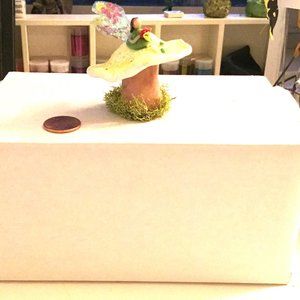 One dollar from your purchase is donated to One Tree Planted, so you not only buy for yourself, but you can feel good about buying for the planet too!!! I donate at the end of each month. This shroomie and fairy are packaged in a sturdy white box with plenty of safety crinkles to keep them both safe during their travels to you. Original, one of a kind, Swarovski Crystals are embedded in the mushroom cap which adds extra sparkle to this beautiful little mushroom. This is perfect for your desk, bookshelf, nightstand or just about anywhere you want to add a little bit of sparkle to your day! Makes for a wonderful gift to anyone who enjoys all things magical. I added in a penny for size comparison.