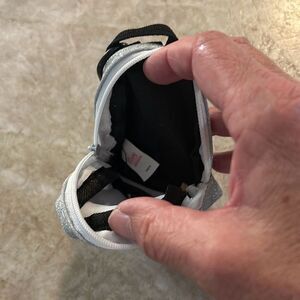 Cute little silver, metallic backpack keychain. Zip top and little zipper pocket in front. Approximately 4 inches long.