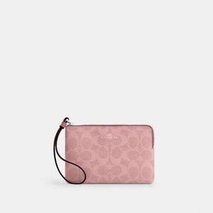 Signature coated canvas Two credit card slots ID window Zip-top closure fabric lining Attached split key ring 4 1/4 (L) x 3 (H) x 1/2 (W) Style No. CAR16