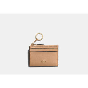 Crossgrain leather Two credit card slots ID window Zip-top closure fabric lining Attached split key ring 4 1/4 (L) x 3 (H) x 1/2 (W) Style No. 88250