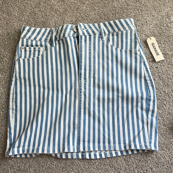 Garage white/blue striped mini skirt. NWT and never worn, the material is stretchy and is very flattering on!