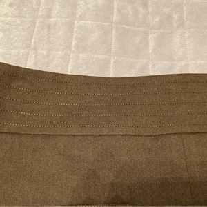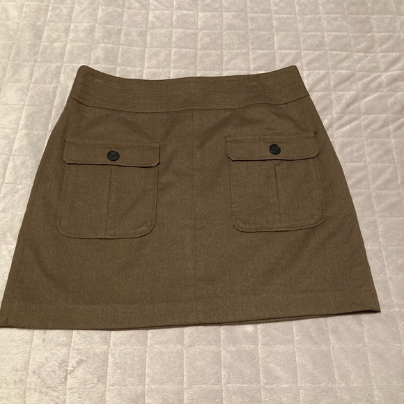 Loft khaki green mini skirt with two utility pockets in the front. Stitching on the waistband. Invisible zipper and hook and eye closure in the back. Lined. Size 10. Condition like new. Please see photo for material content.