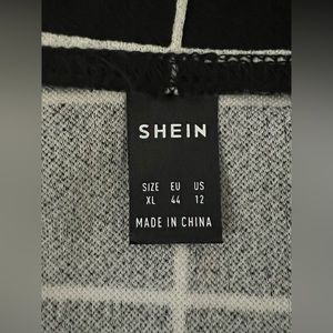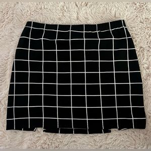 Black and white plaid mini skirt. Has two little slits in the front giving it a fun shape. Super soft fabric. Size XL from Shein.